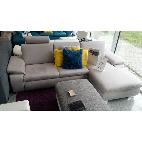 Sedacia súprava má lôžko. Použitý poťahový materiál má povrchovú úpravu pre lepšiu údržbu. Svetlosivá farba sedacej súpravy sa dobre ladí k ostatným farbám interiéru. Pre vyšší komfort pri odpočinku má sedacia súprava opierku hlavy, ktorú je možné preložiť do opretia každého miesta na sedenie. Nožičky sedacej súpravy sú z tvrdeného plastu - chrómované.